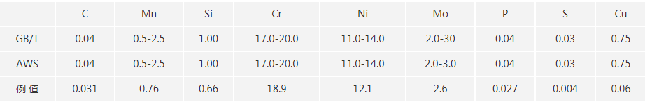 適用于石油化工、壓力容器、食品機械、醫(yī)療機械、化肥等行業(yè),焊接18Cr-12%Ni-2%Mo不銹鋼(SUS316L等)。