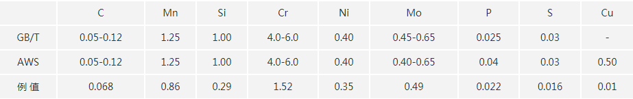 適用于工作在550℃以下高溫高壓管道、合成化工機械、石油裂化設備等焊接,如Cr5Mo類鋼。